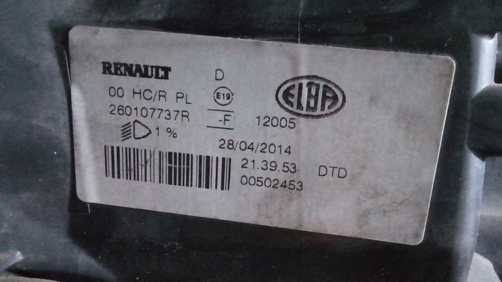 OPTICA DIREITA DACIA SANDERO 2014. REFERENCIA 260107737R. OPTICA ORIGINAL COM UM SUPORTE PARTIDO